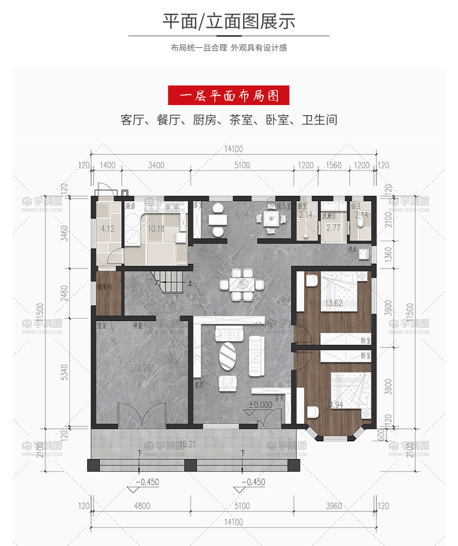| 開間:14.1米 | 進深:11.5米 | 占地面積:178.8平方米 | 建筑面積:352.39平方米 |
