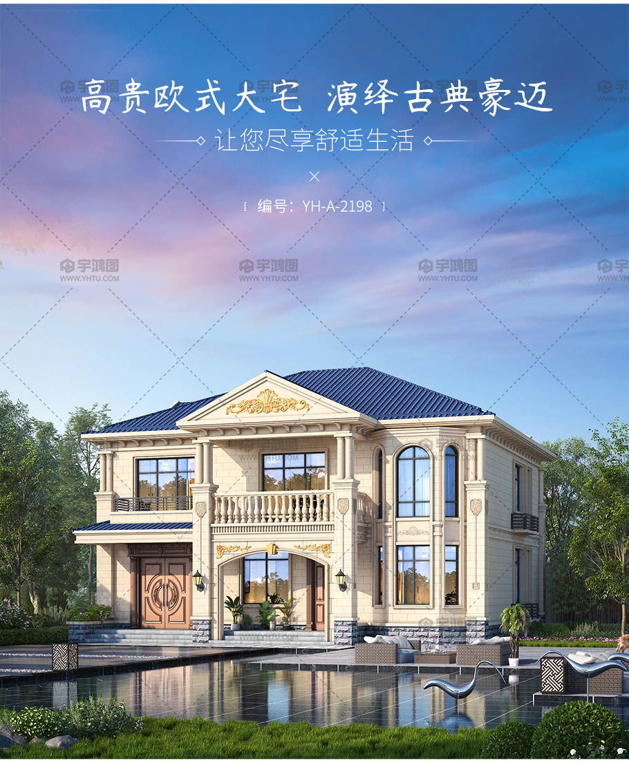 | 風格:歐式 | 層數:二層 | 結構形式:磚混結構 | 圖紙編號:YH-A-2198 |