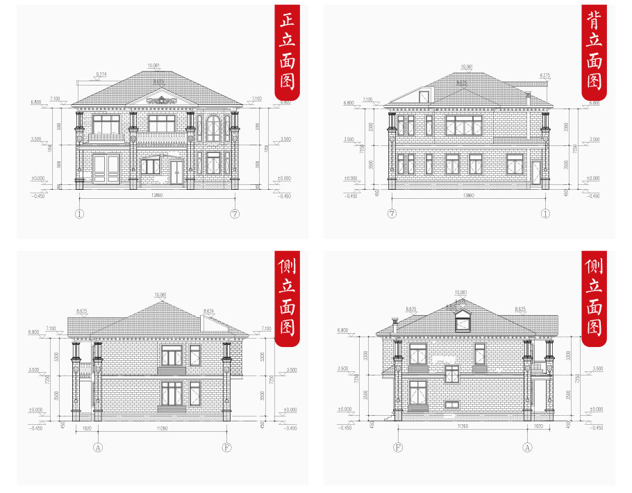 | 建筑圖: | 建筑平面圖:一層平面圖,二層平面圖; 建筑立面圖:東立面圖,西立面圖,南立面圖,北立面圖,剖面圖; 大樣圖:樓梯詳圖,細部大樣,門窗大樣 |