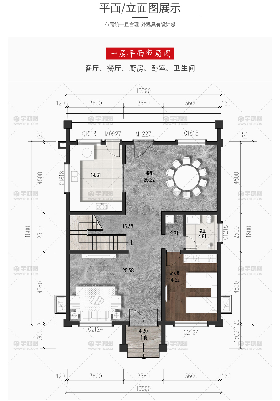建筑平面圖:一層平面圖,二層平面圖;