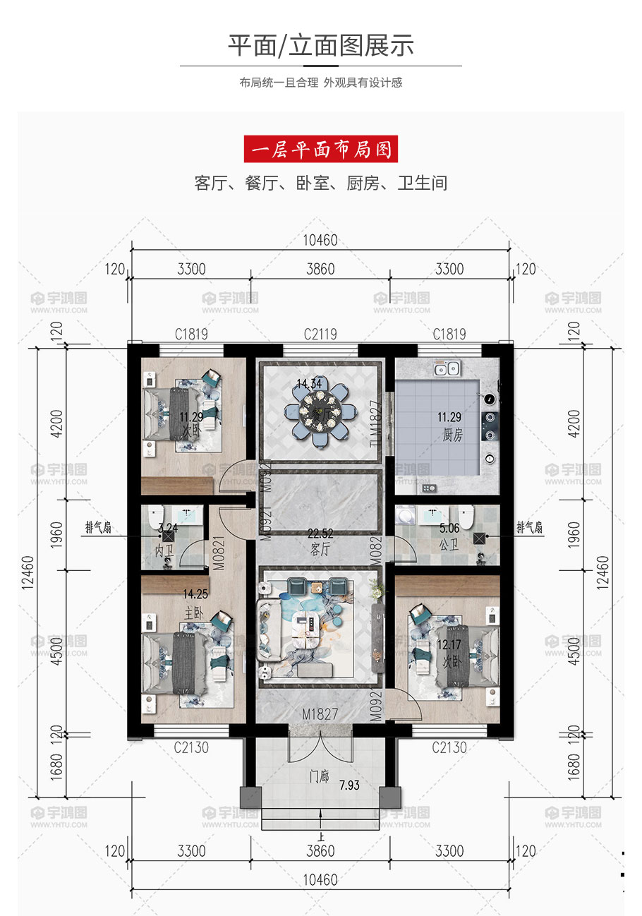 | 開間:10.46米 | 進深:12.46米 | 占地面積:124平方米 | 建筑面積:121平方米 |