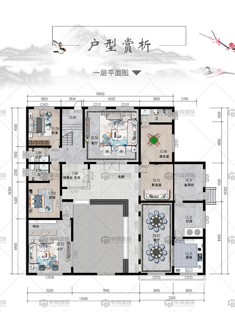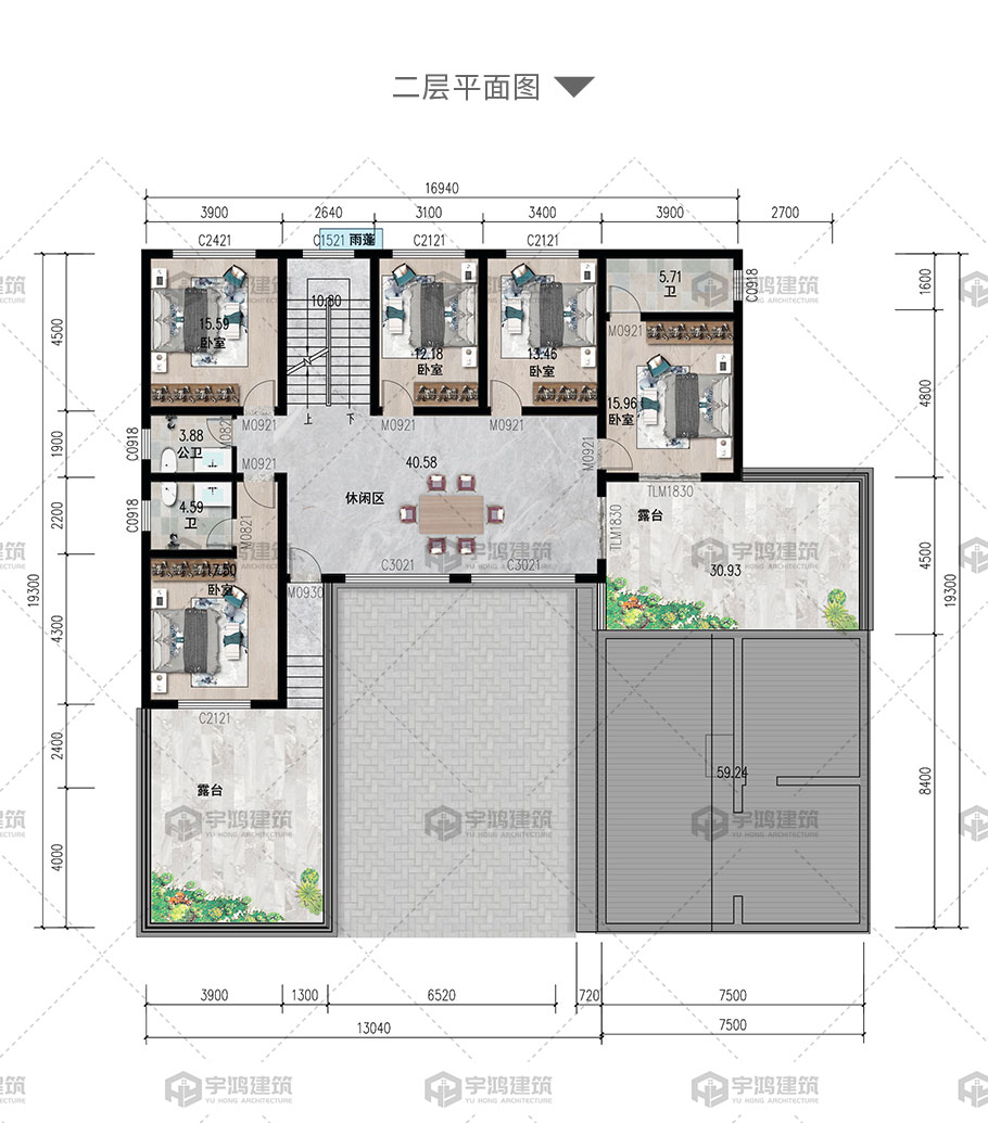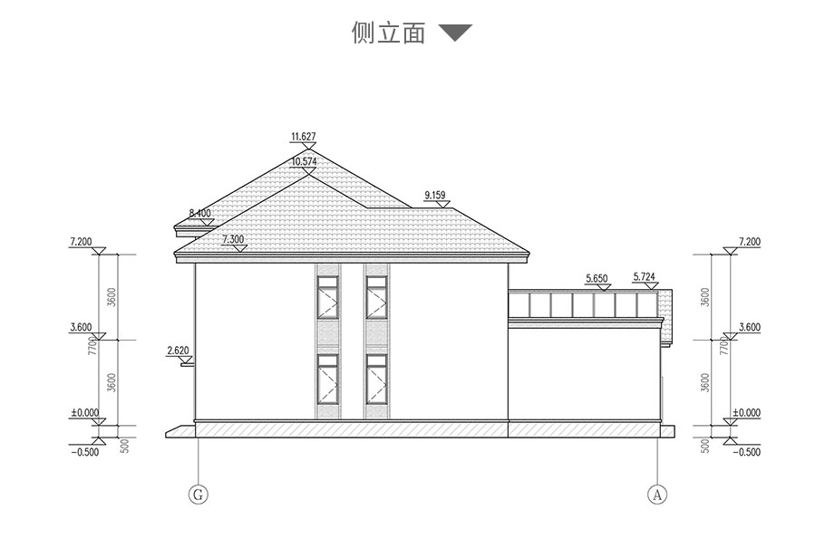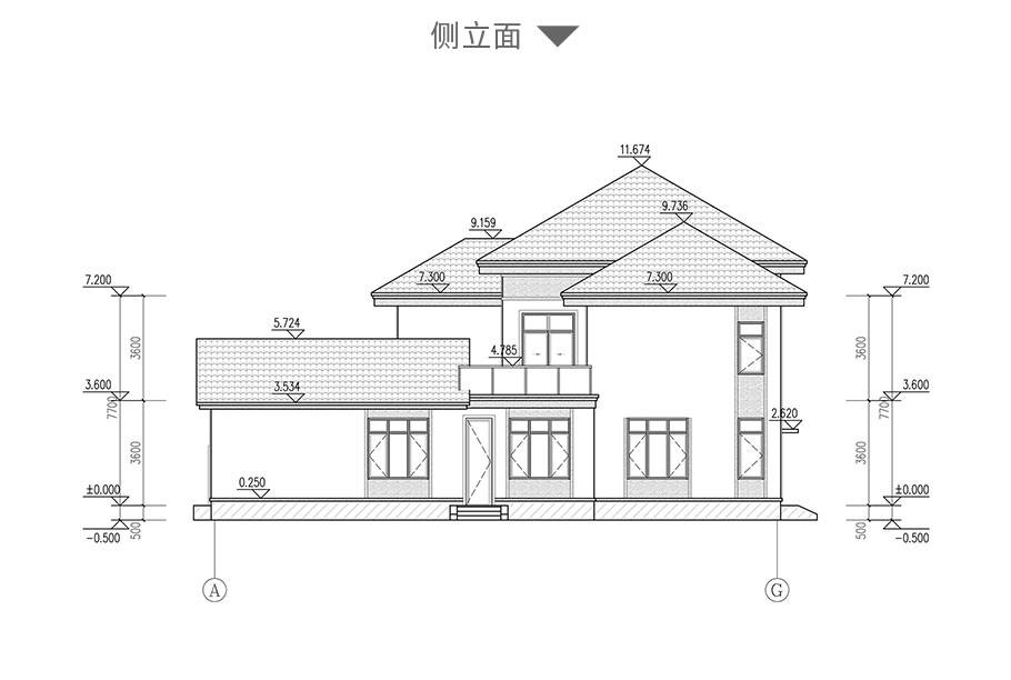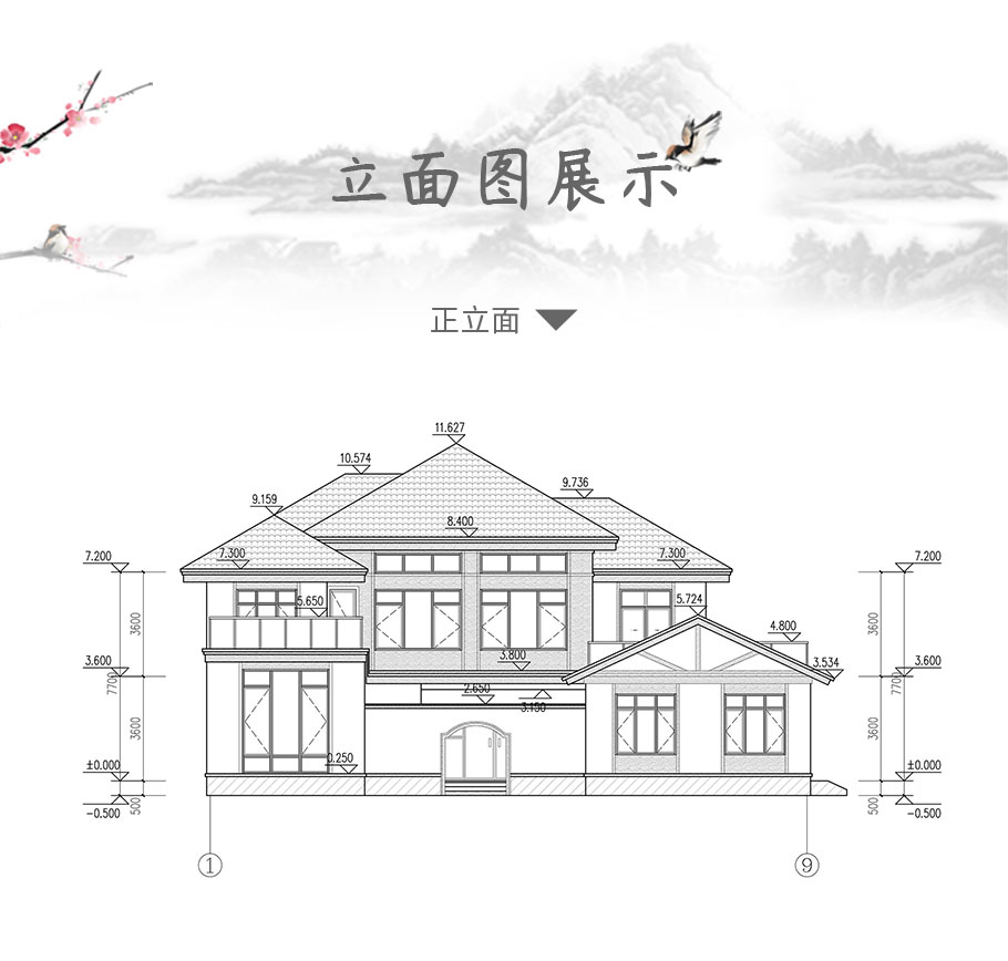 建筑立面圖:東立面圖,西立面圖,南立面圖,北立面圖,剖面圖;