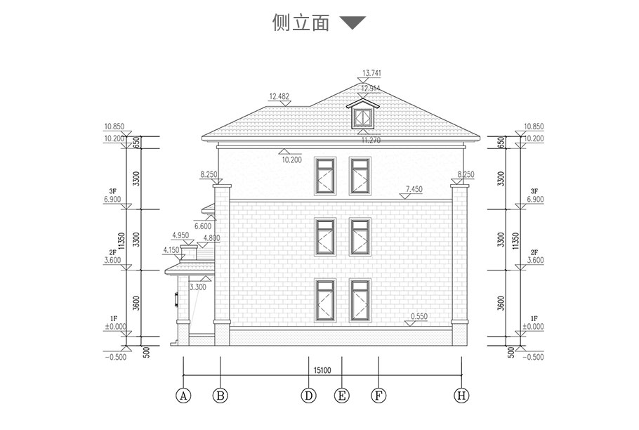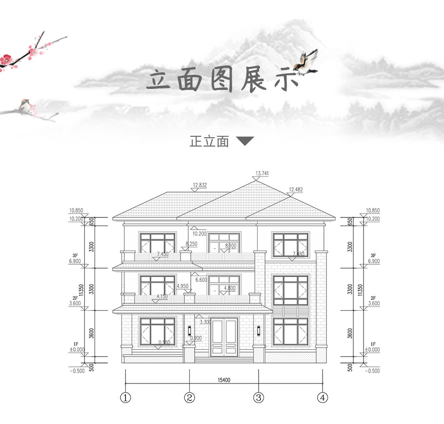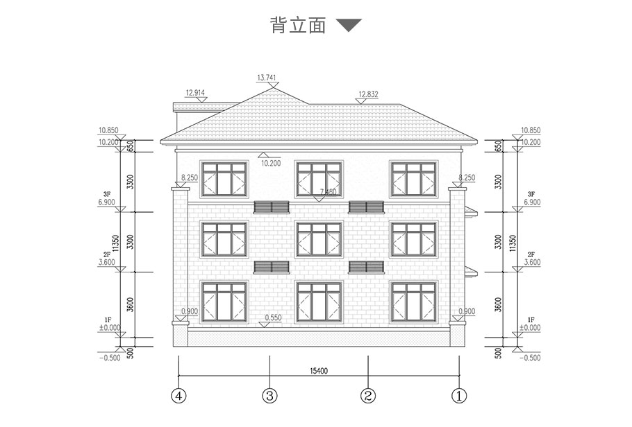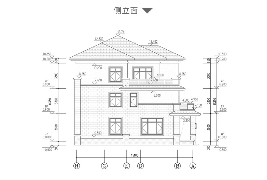 建筑立面圖:東立面圖,西立面圖,南立面圖,北立面圖,剖面圖;