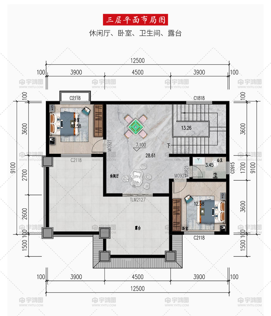 成品圖紙>120平米三層帶大露臺別墅設(shè)計(jì)圖紙