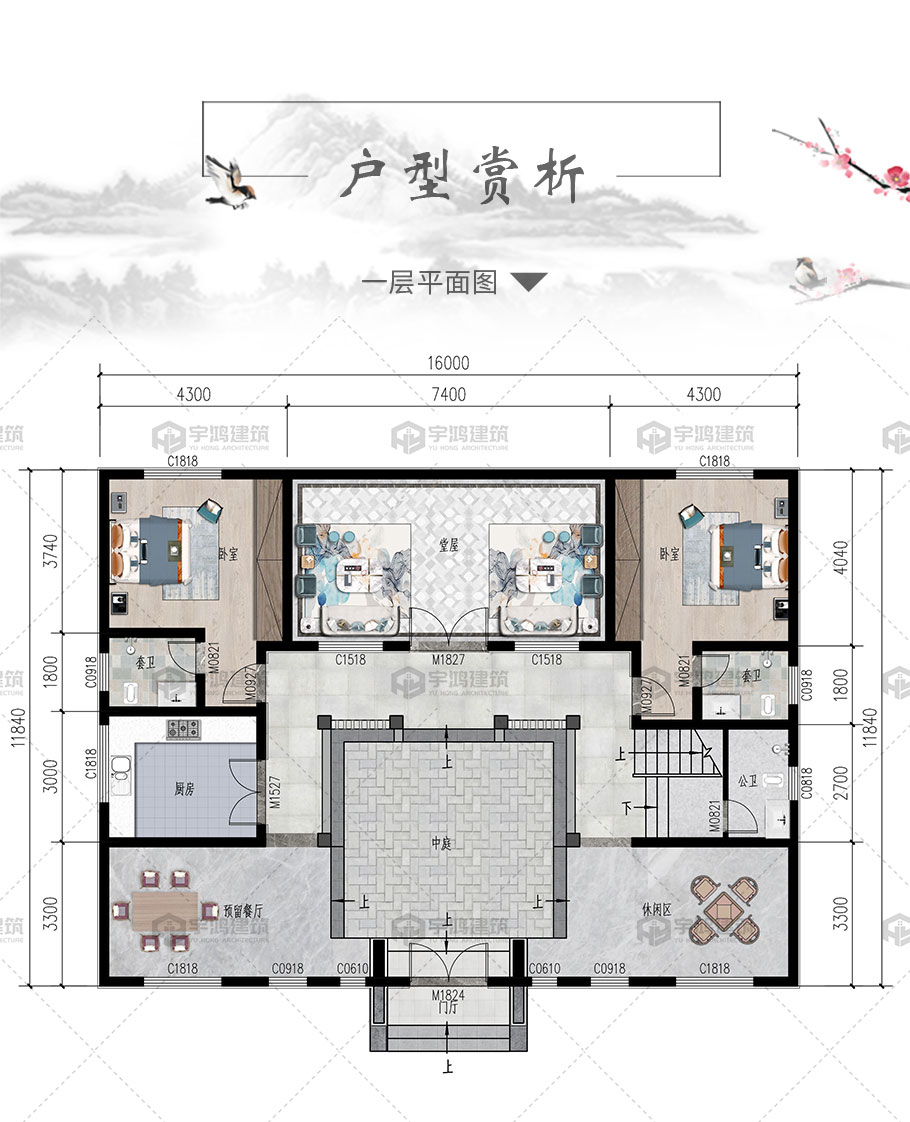 | 風格:中式 | 層數:二層 | 結構形式:框架結構 | 圖紙編號:YH-A-2211 |