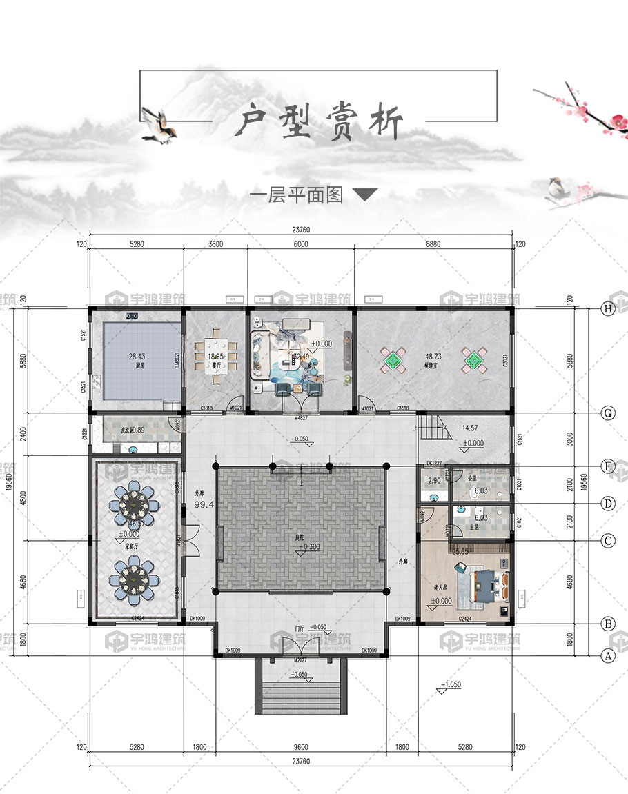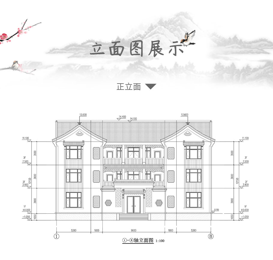 | 風格:中式 | 層數:三層 | 結構形式:框架結構 | 圖紙編號:YH-A-3236 |