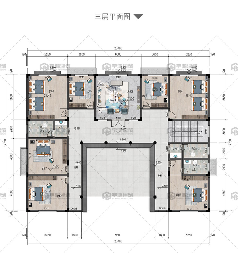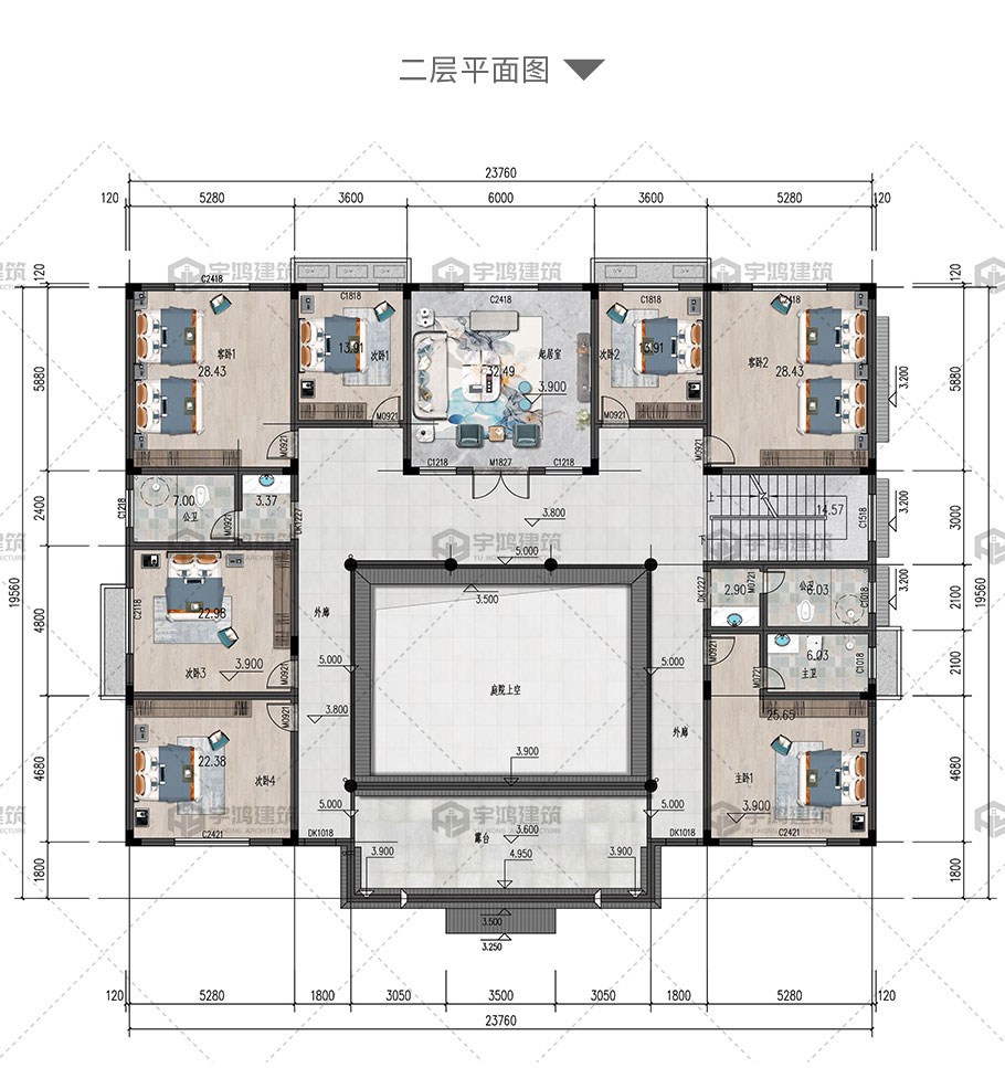 | 開間:23.76米 | 進深:19.56米 | 占地面積:449.7平方米 | 建筑面積:1083.45平方米 |