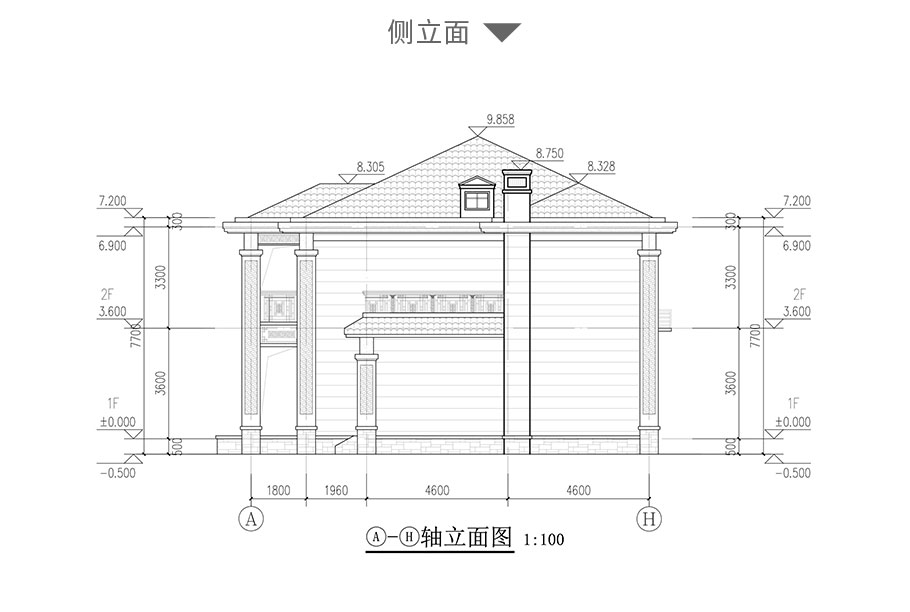 | 結構圖: | 柱施工圖:基礎平面圖,一層柱平面圖,二層柱平面圖,屋頂柱平面圖; 梁施工圖:一層梁平法施工圖,二層梁平法施工圖,頂層梁平法施工圖; 板施工圖:層板平法施工圖,二層板平法施工圖,屋頂層板平法施工圖 詳圖:樓梯平面,樓梯剖面圖; 其他:坡屋面施工說明圖一,坡屋面施工說明圖二 |