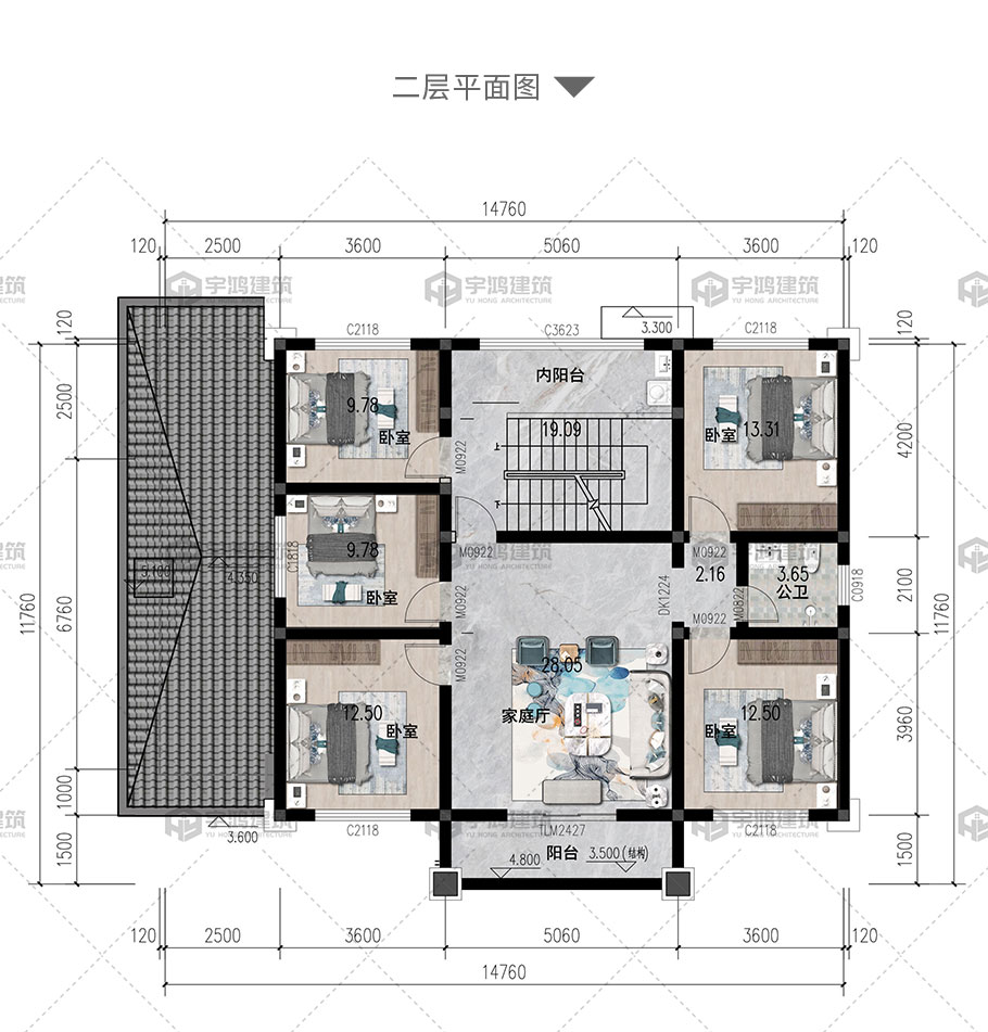 | 風格:新中式 | 層數:二層 | 結構形式:框架結構 | 圖紙編號:YH-A-2248 |