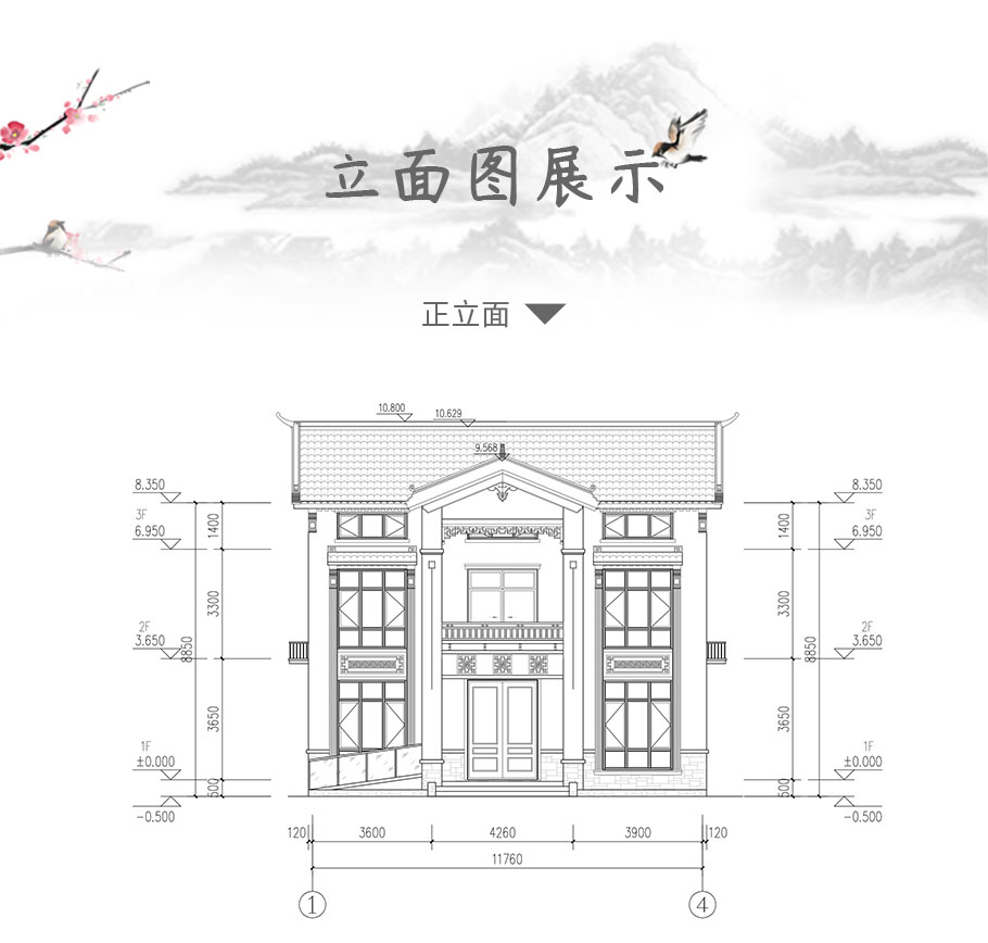 | 風格:新中式 | 層數:三層 | 結構形式:磚混結構 | 圖紙編號:YH-A-3249 |