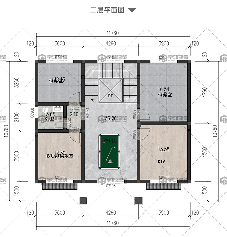 | 開間:11.7米 | 進深:10.7米 | 占地面積:121.4平方米 | 建筑面積:291平方米 |