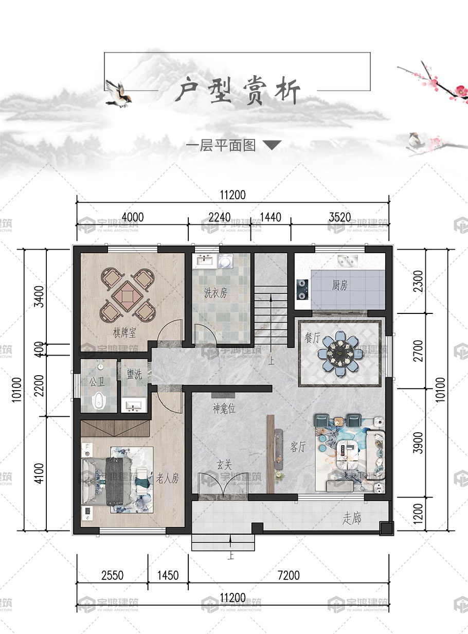 | 開間:11.2米 | 進深:10.1米 | 占地面積:113.5平方米 | 建筑面積:227平方米 |