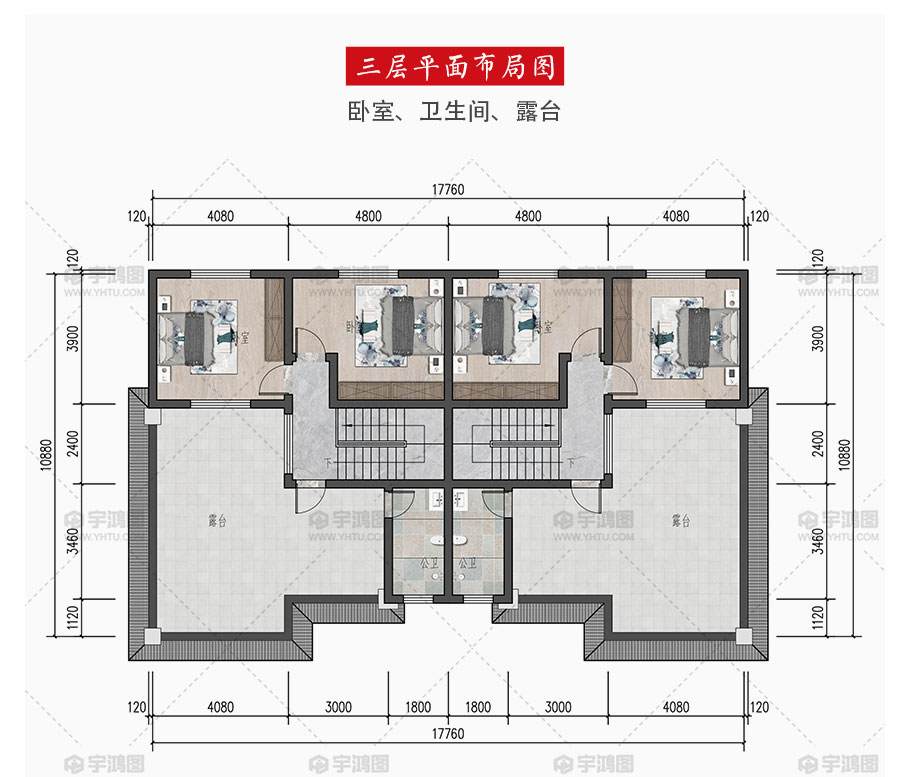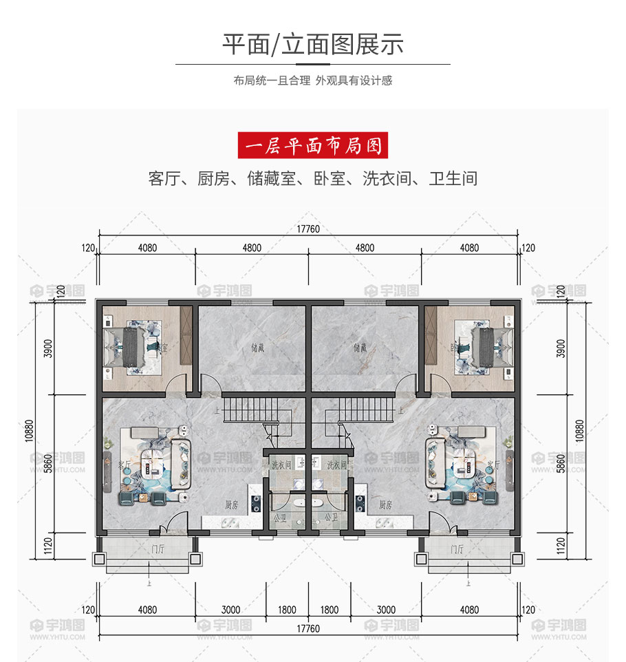 | 開間:17.76米 | 進深:10.88米 | 占地面積:185.4平方米 | 建筑面積:482.2平方米 |