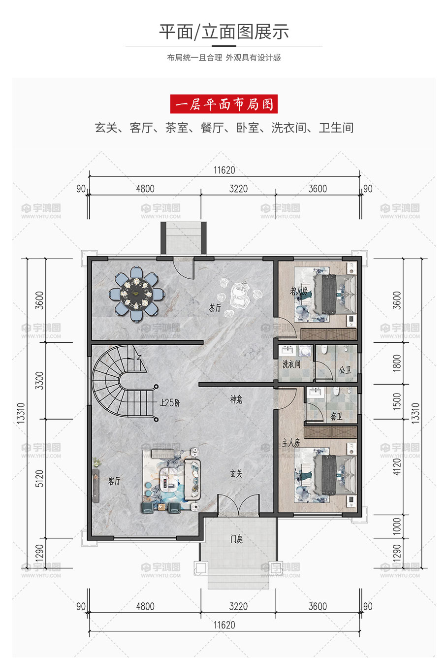 | 開間:11.6米 | 進深:13.3米 | 占地面積:141平方米 | 建筑面積:351平方米 |