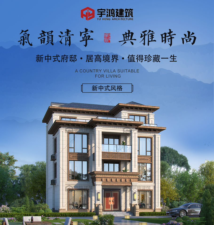 | 風格:新中式 | 層數:四層 | 結構形式:框架結構 | 圖紙編號:YH-A-4045 |