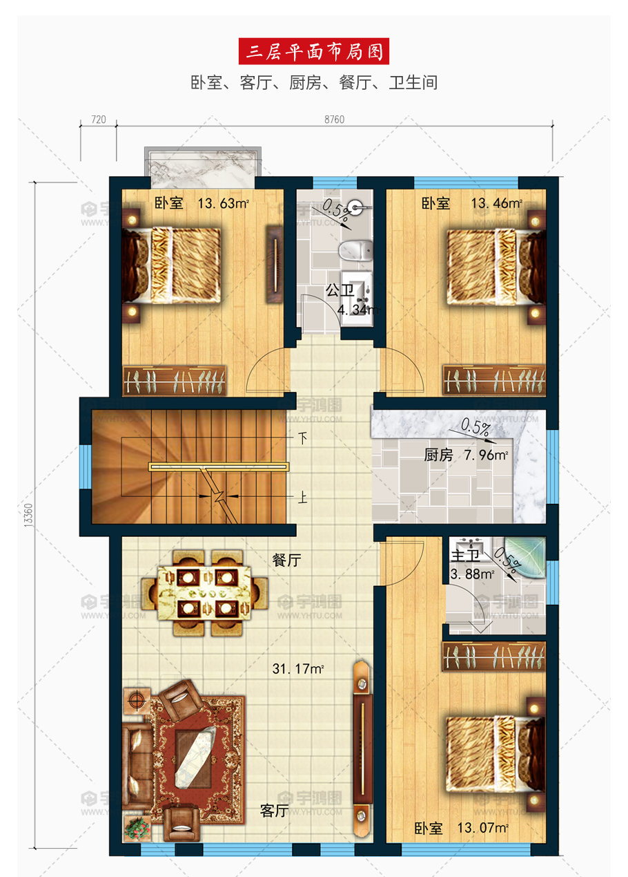 建筑平面圖:一層平面圖,二層平面圖,三層平面圖,四層平面圖;