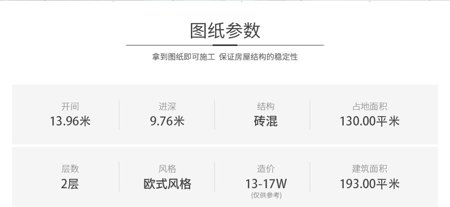 | 開間:13.9米 | 進深:9.7米 | 占地面積:130平方米 | 建筑面積:193平方米 |