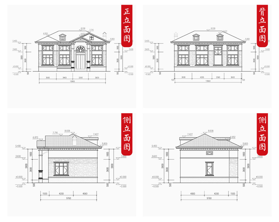 | 建筑圖: | 建筑平面圖:一層平面圖,二層平面圖; 建筑立面圖:東立面圖,西立面圖,南立面圖,北立面圖,剖面圖; 大樣圖:樓梯詳圖,細部大樣,門窗大樣 |