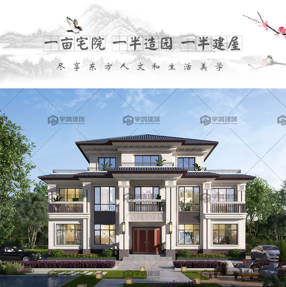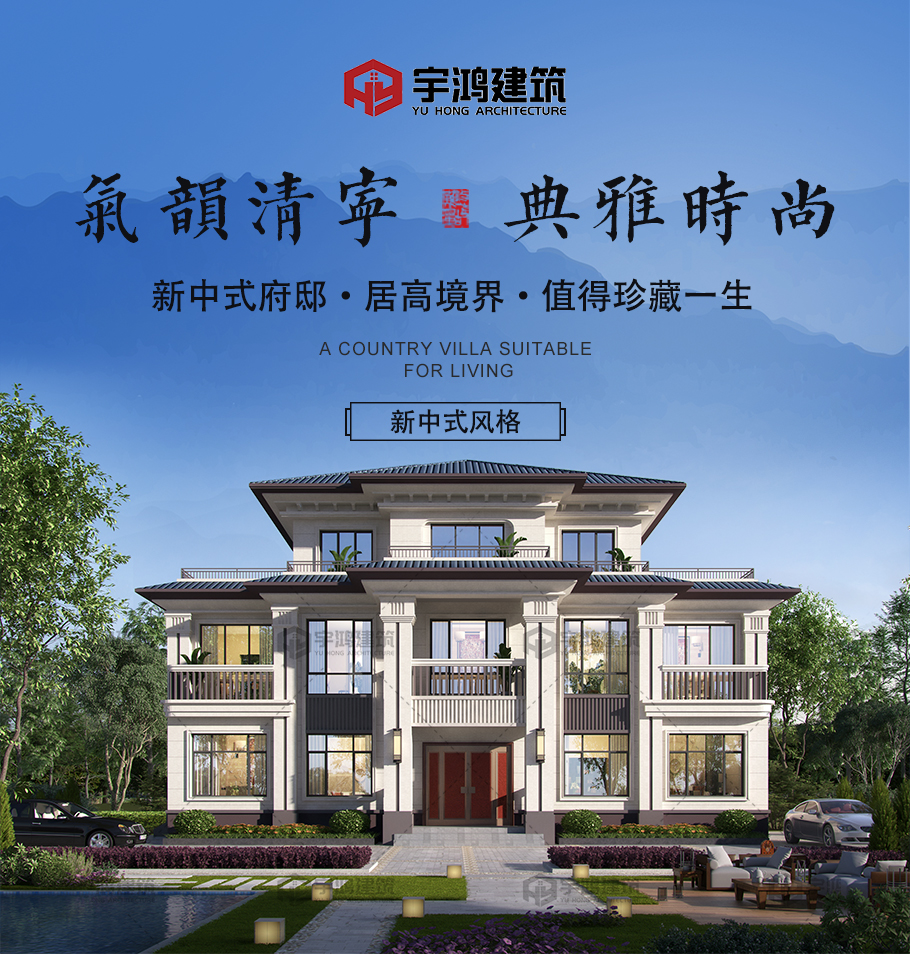 三層新中式大氣別墅造型占地188平自建別墅設計