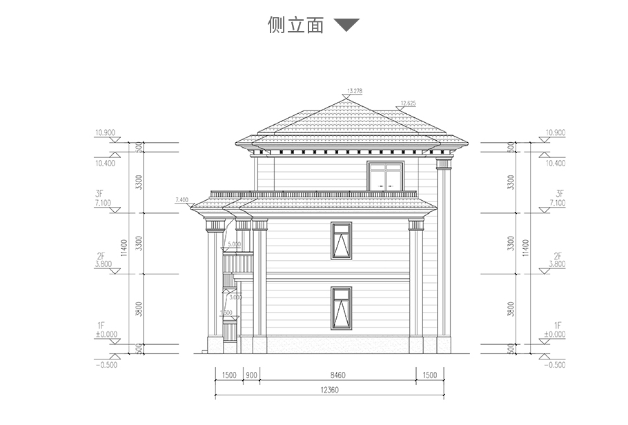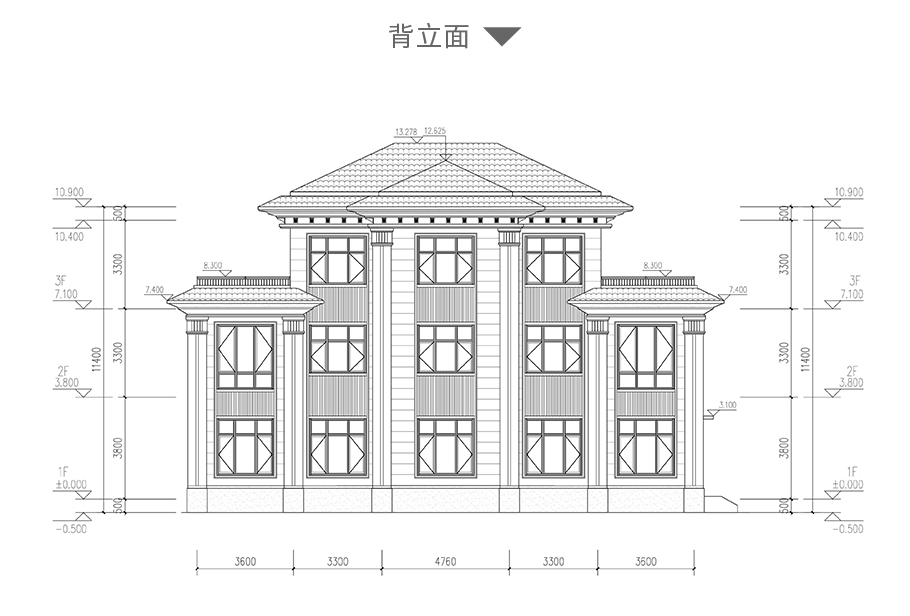 建筑平面圖:一層平面圖,二層平面圖,三層平面圖; 建筑立面圖:東立面圖,西立面圖,南立面圖,北立面圖,剖面圖; 大樣圖:樓梯詳圖,細部大樣,門窗大樣 |