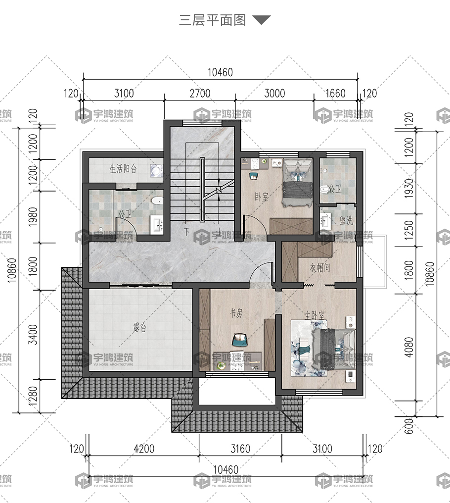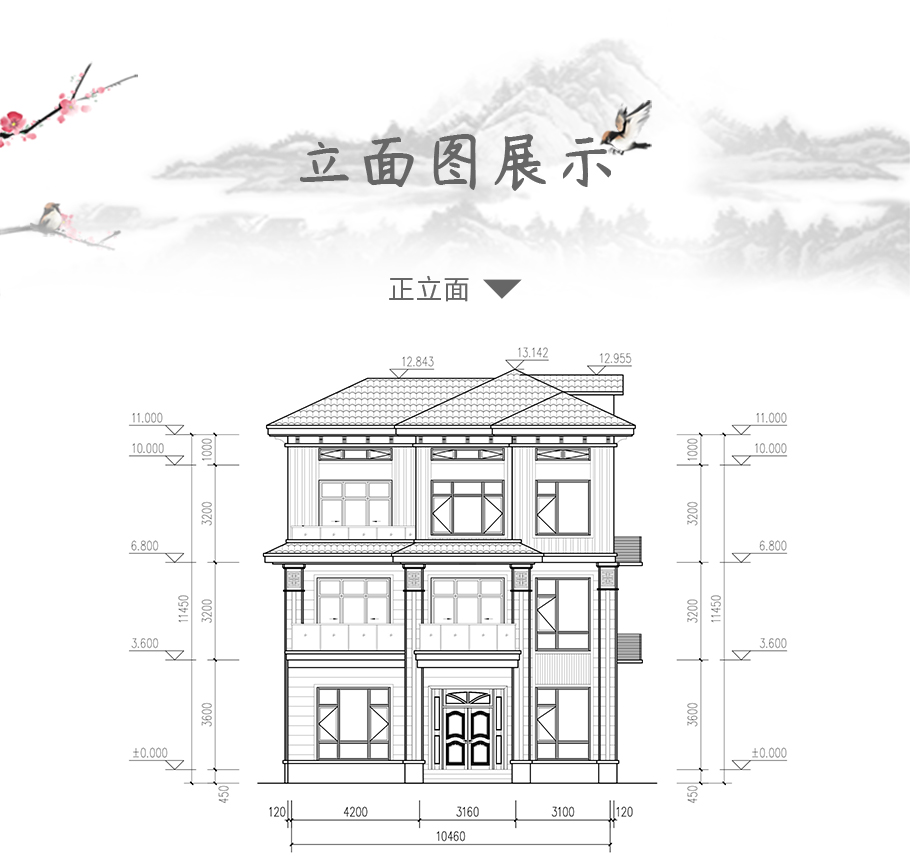 成品圖紙>新中式磚混別墅占地95平三層別墅設(shè)計(jì)圖