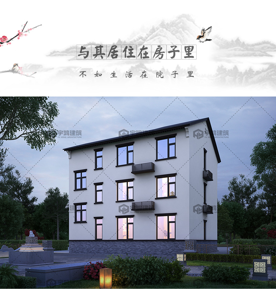 三層新中式磚混別墅占地131平別墅設(shè)計(jì)圖