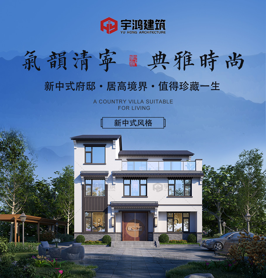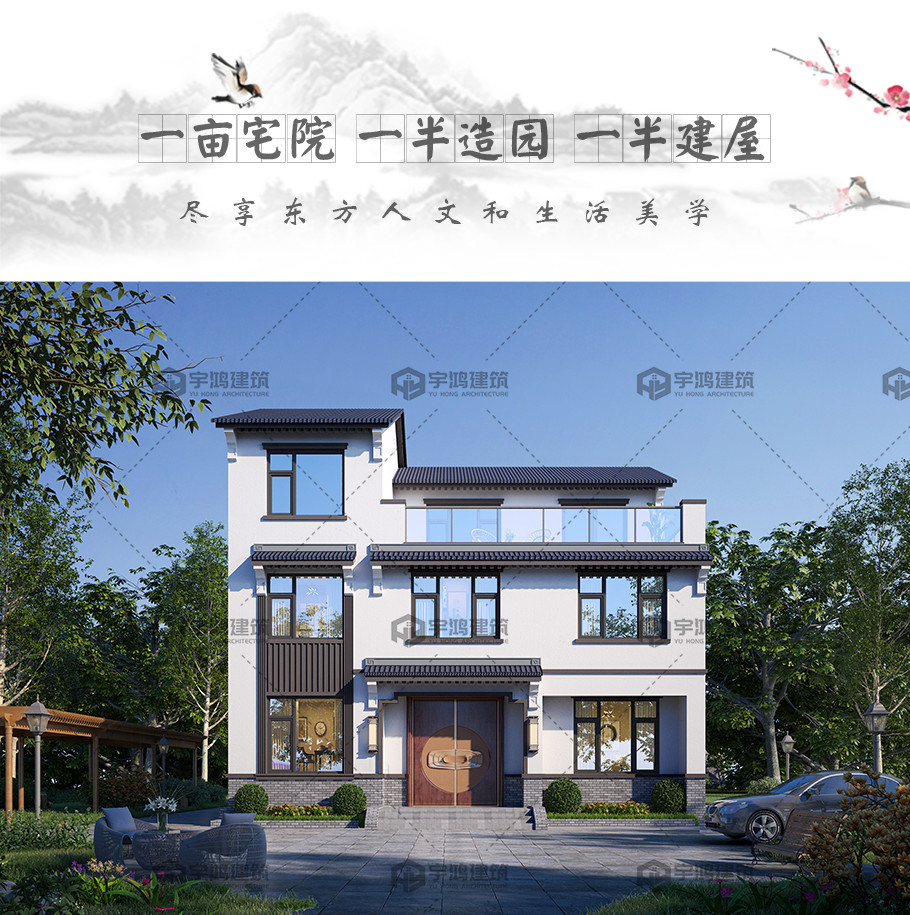 成品圖紙>三層新中式磚混別墅占地131平別墅設(shè)計(jì)圖