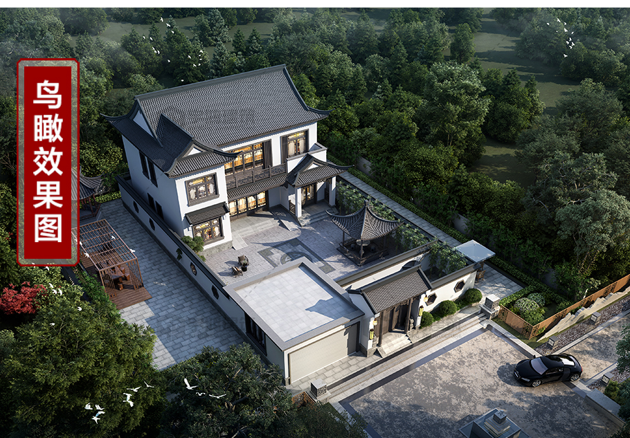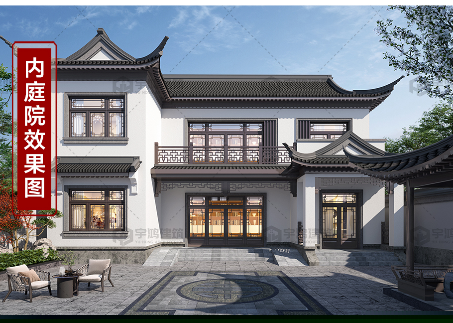 兩層中式庭院自建別墅占地159平別墅圖紙