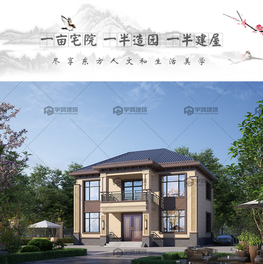 成品圖紙>精美實(shí)用兩層新中式別墅占地117平別墅設(shè)計(jì)圖紙