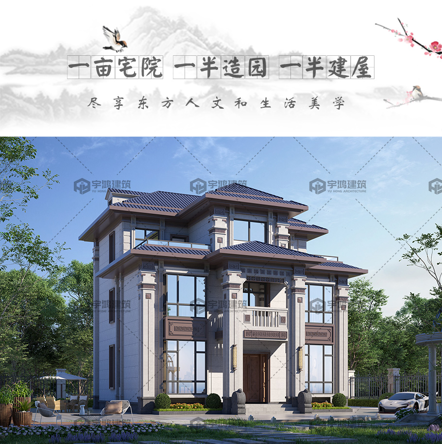 三層框架新中式占地135平自建別墅設計圖