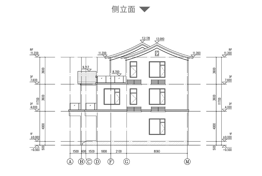 建筑平面圖:一層平面圖,二層平面圖,三層平面圖; 建筑立面圖:東立面圖,西立面圖,南立面圖,北立面圖,剖面圖; 大樣圖:樓梯詳圖,細部大樣,門窗大樣 |