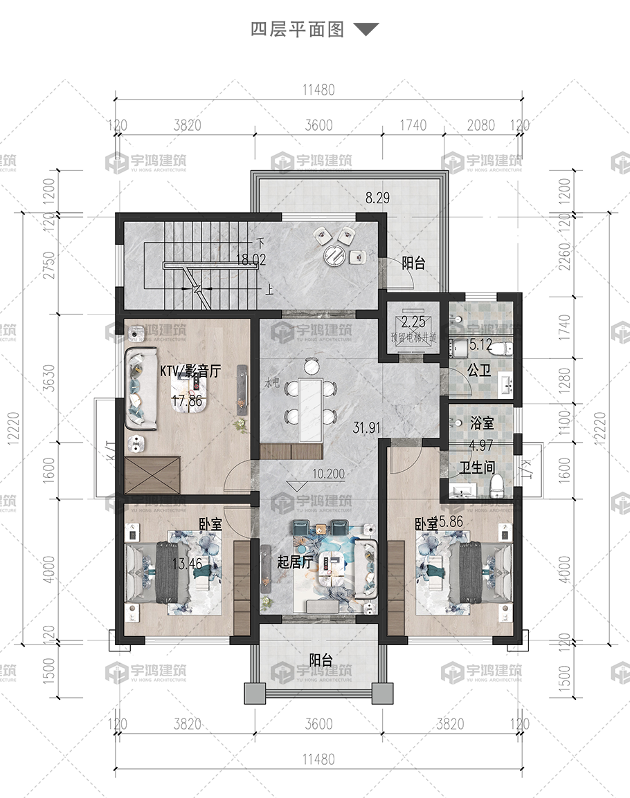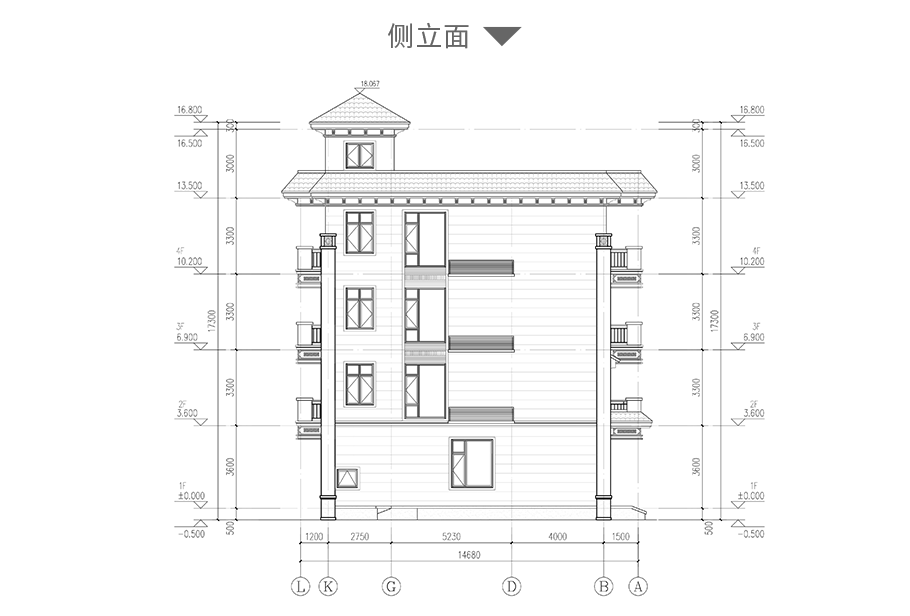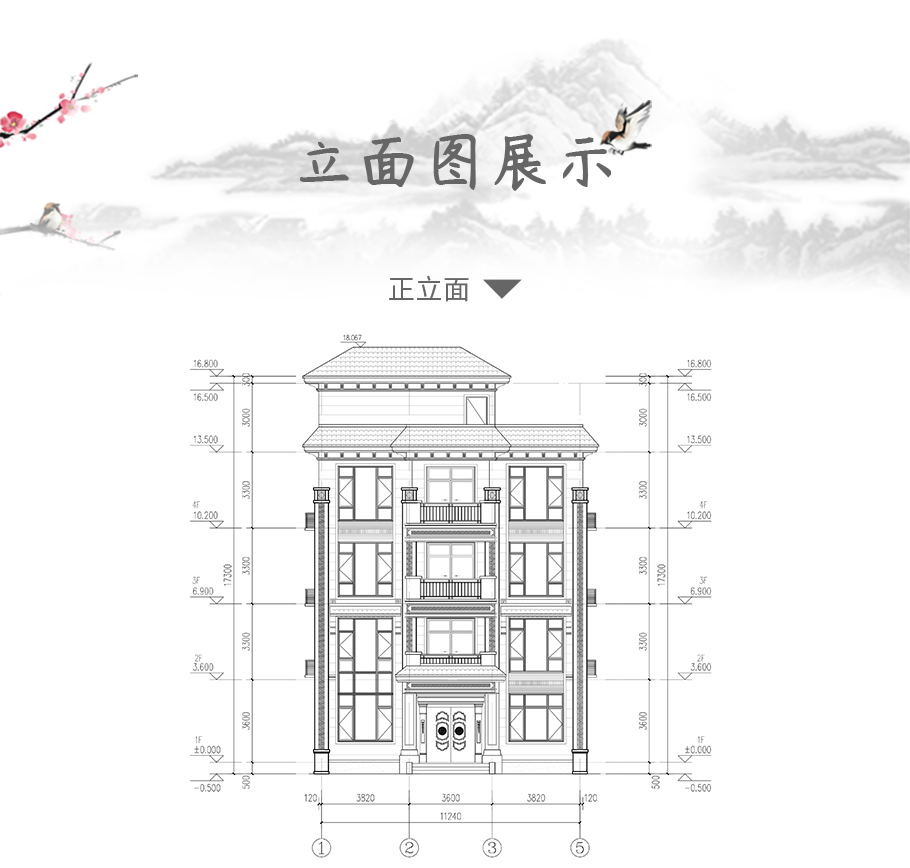 | 風格:新中式 | 層數:四層 | 結構形式:框架結構 | 圖紙編號:YH-4-6175 |