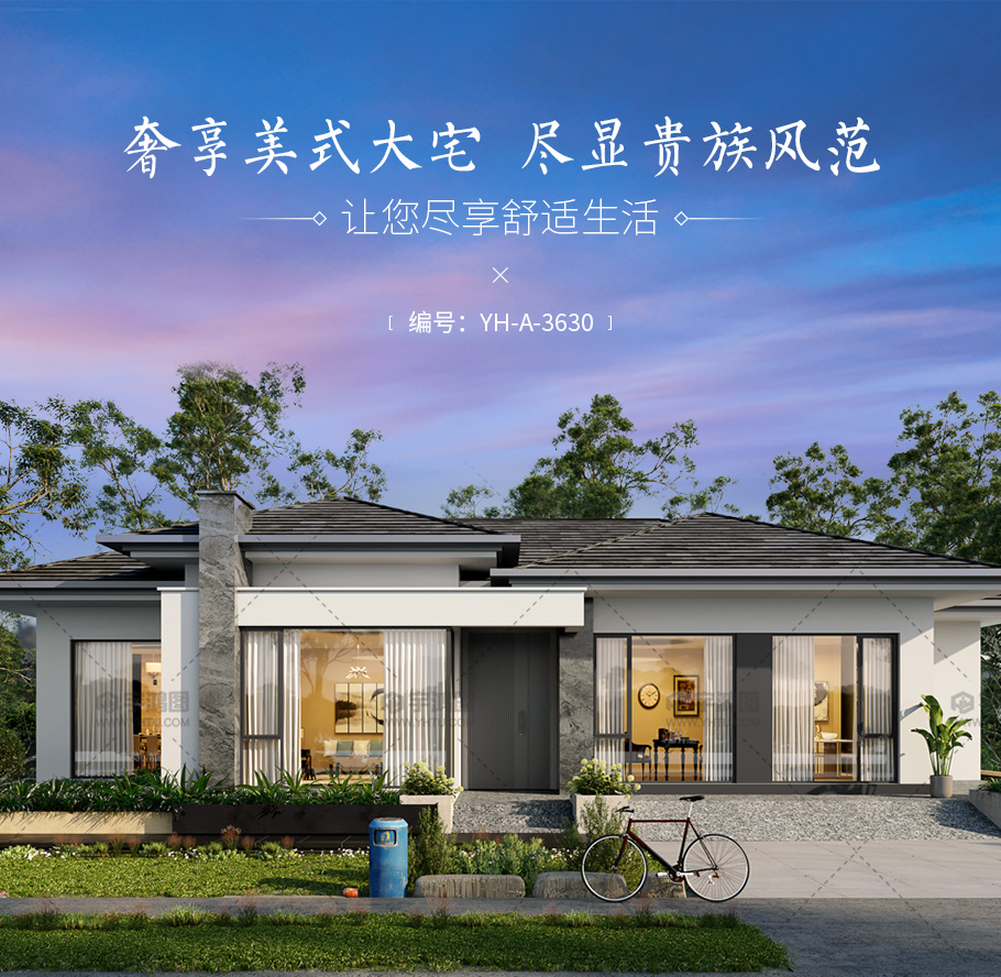 | 風格:美式 | 層數:一層 | 結構形式:磚混結構 | 圖紙編號:YH-1-3630 |