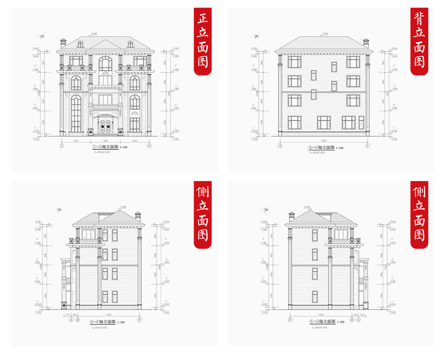 四層豪華歐式占地218平別墅自建樓房設計圖紙