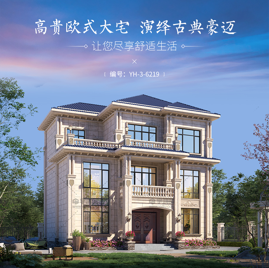 | 風格:歐式 | 層數:三層 | 結構形式:框架結構 | 圖紙編號:YH-3-6219 |