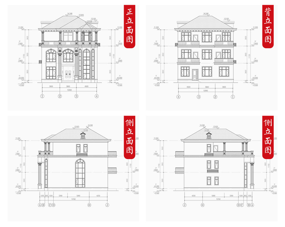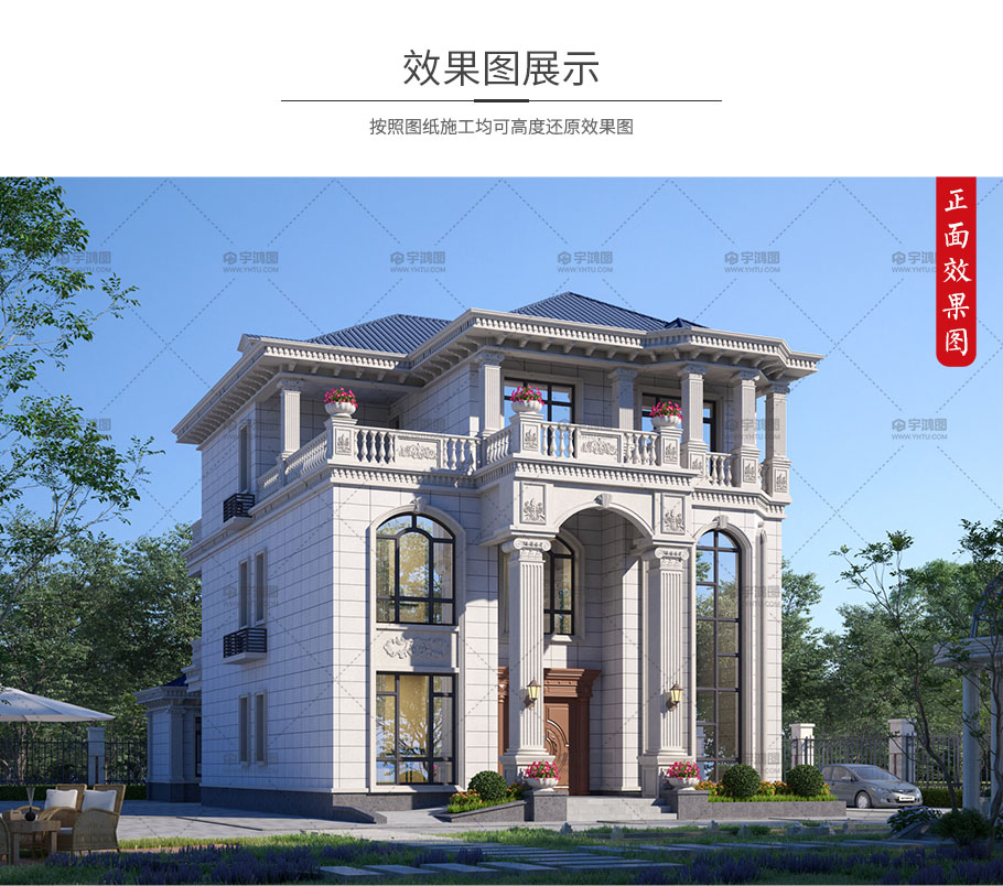 成品圖紙>造價(jià)50萬左右三層框架結(jié)構(gòu)歐式別墅設(shè)計(jì)圖