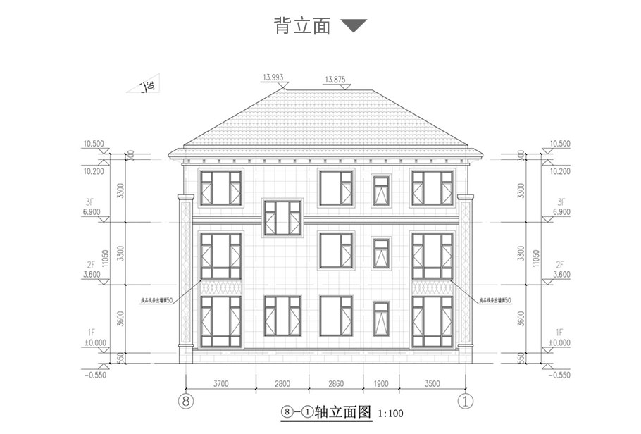 建筑平面圖:一層平面圖,二層平面圖,三層平面圖; 建筑立面圖:東立面圖,西立面圖,南立面圖,北立面圖,剖面圖; 大樣圖:樓梯詳圖,細(xì)部大樣,門窗大樣 |