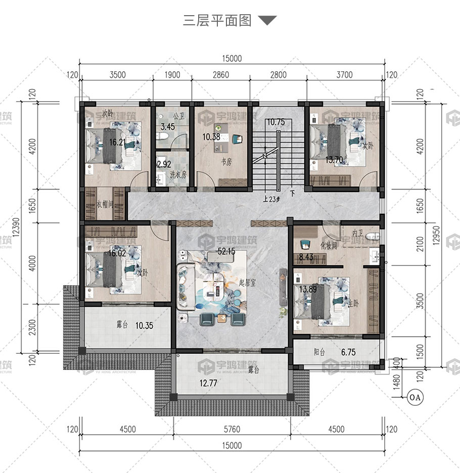 成品圖紙>203平帶露臺(tái)三層新中式全套別墅設(shè)計(jì)圖紙