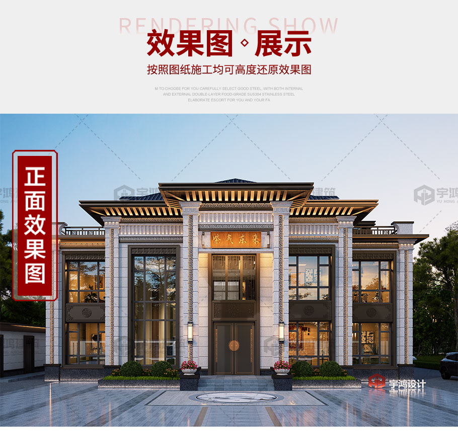 占地266平造價43萬-55萬新中式別墅設計圖紙
