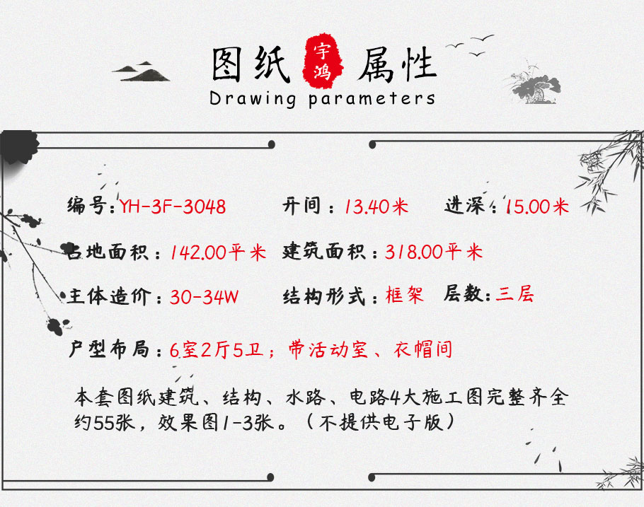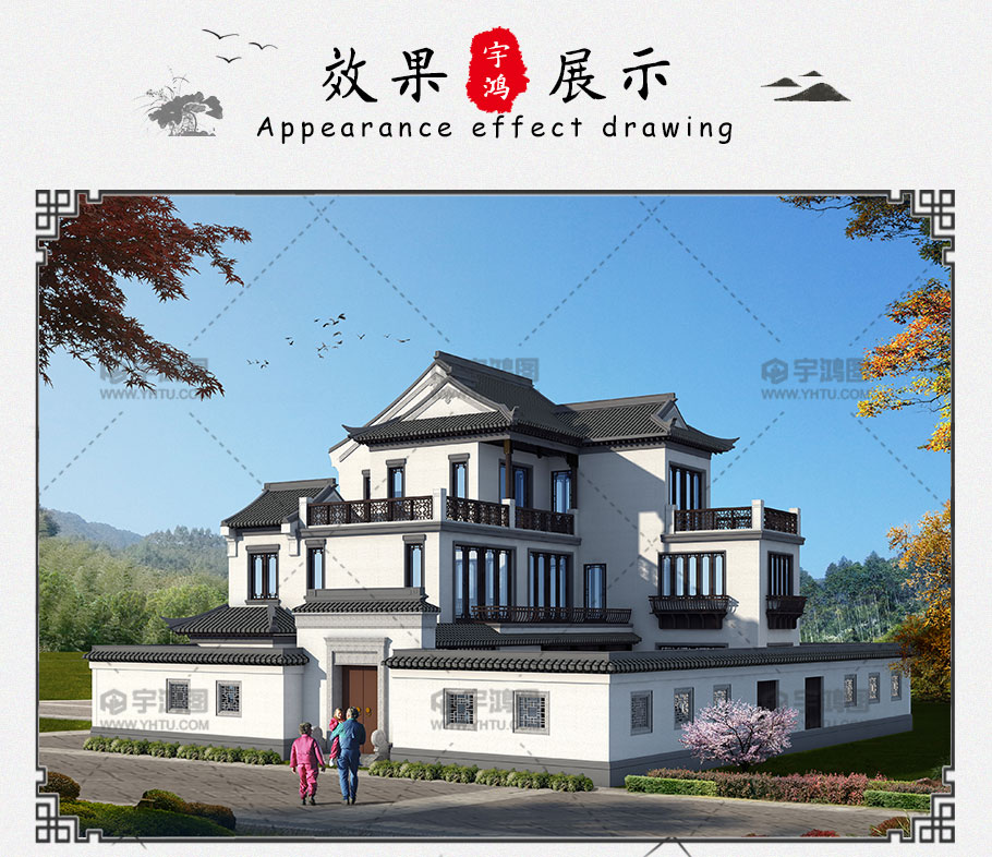 本戶型為142平三層新中式帶庭院別墅設計圖,占地142平方米,這棟古色古香的帶庭院別墅,屋頂采用傳統中式屋頂的設計形式,給人宏大的氣勢,連廊與庭院的結合,整個建筑又透露出清新淡雅、詩情畫意之感。別墅左右留有庭院,視野開闊,庭院開敞,可活動、休閑、停車,種樹。