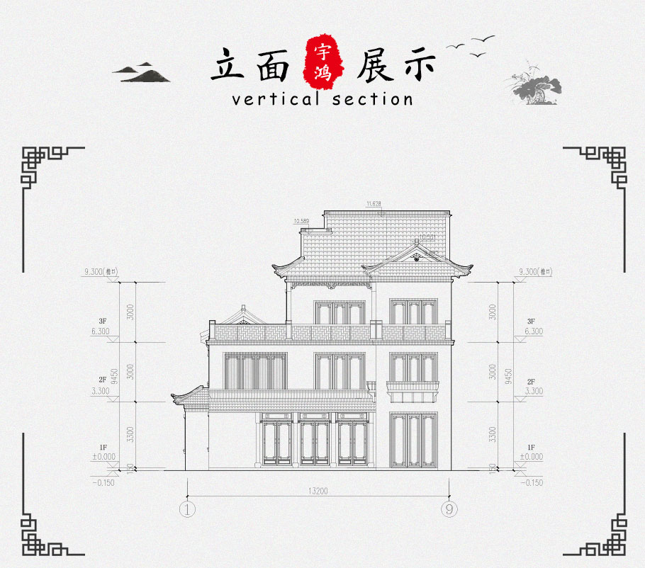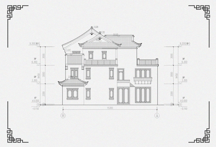 建筑立面圖:東立面圖,西立面圖,南立面圖,北立面圖,剖面圖;