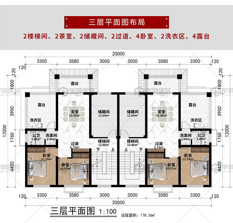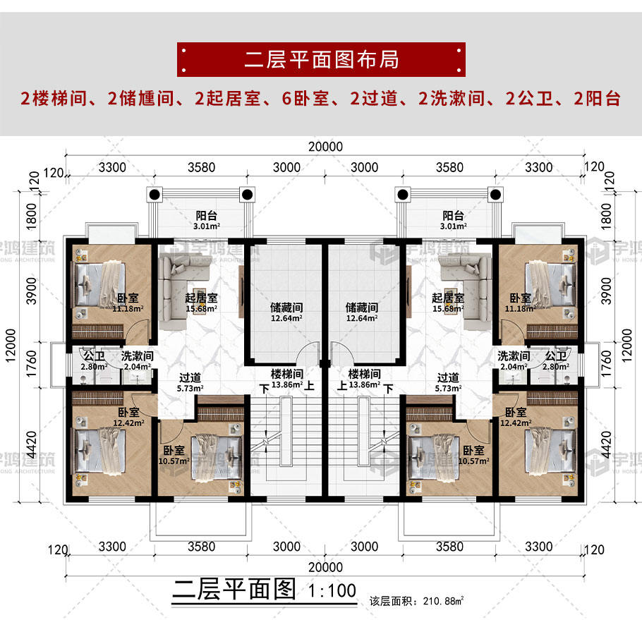 | 開間:20米 | 進深:12米 | 占地面積:210.88平方米 | 建筑面積:600.01平方米 |