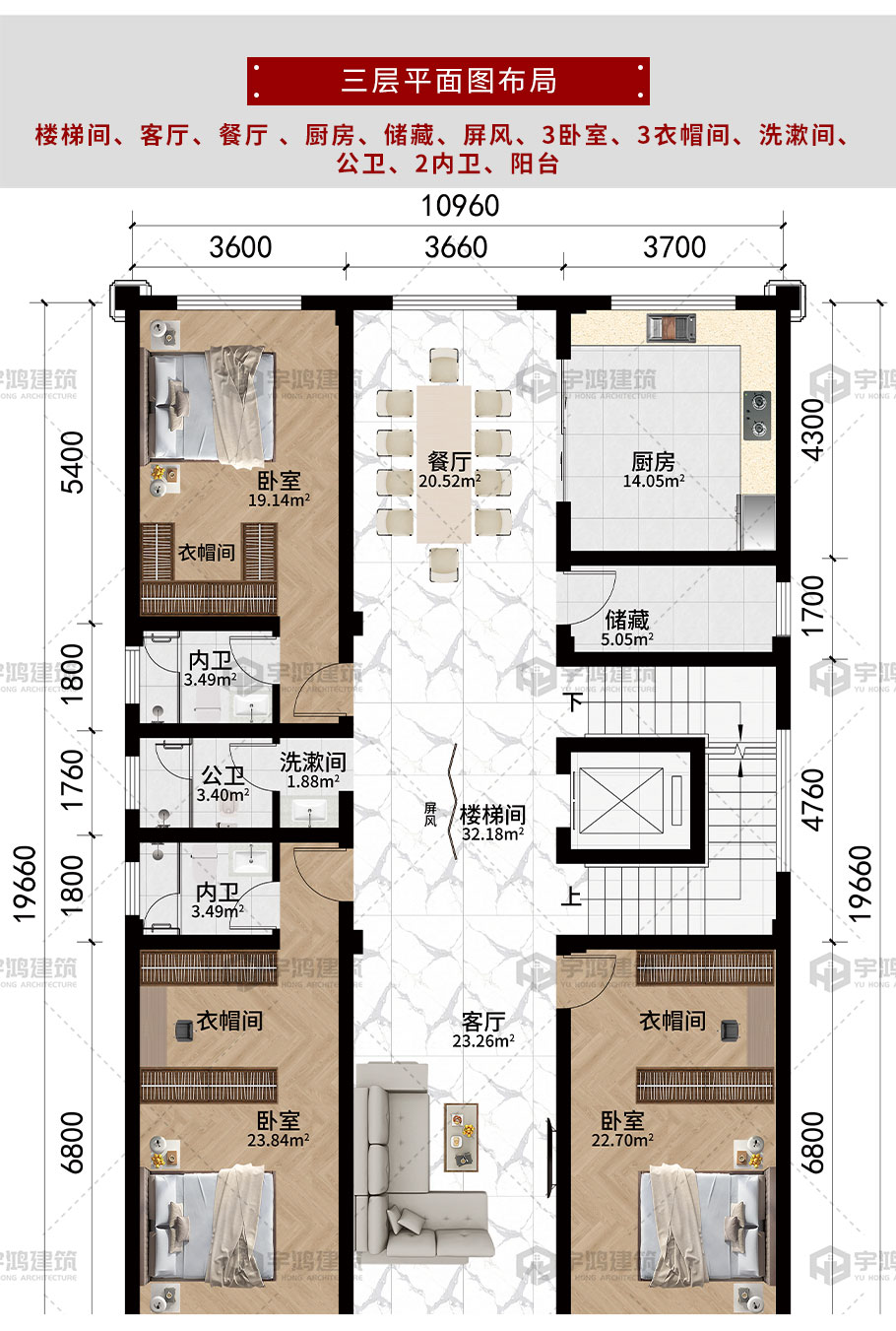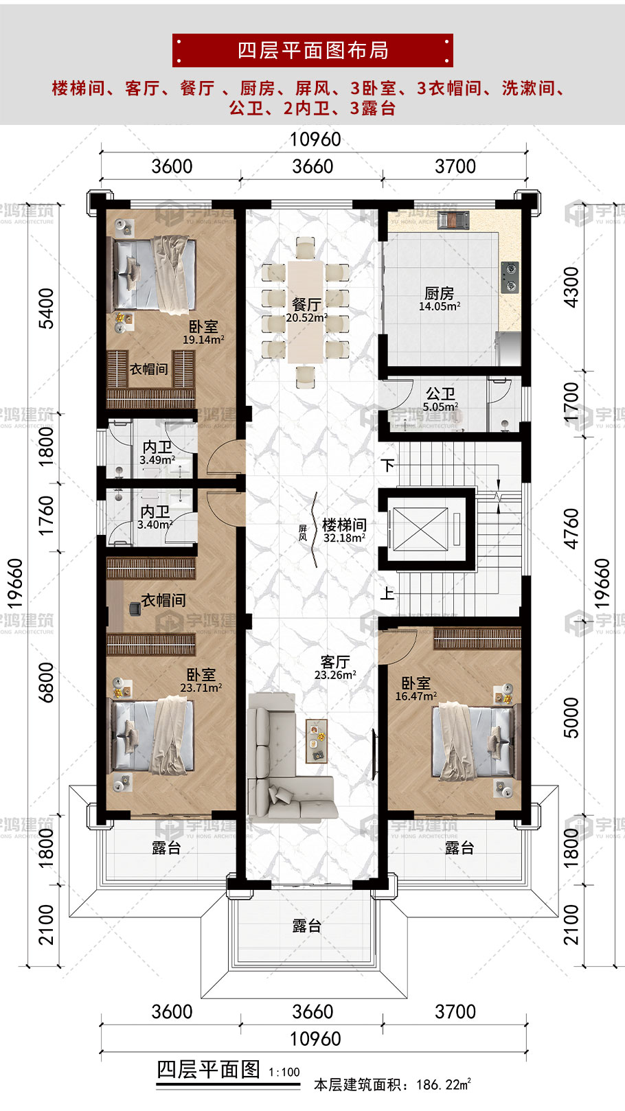 樓層給排水平面圖:一層給排水平面圖,二層給排水平面圖,三層給排水平面圖,四層給排水平面圖,五層給排水平面圖; 屋頂給排水平面圖; 衛生間排水系統圖 |
