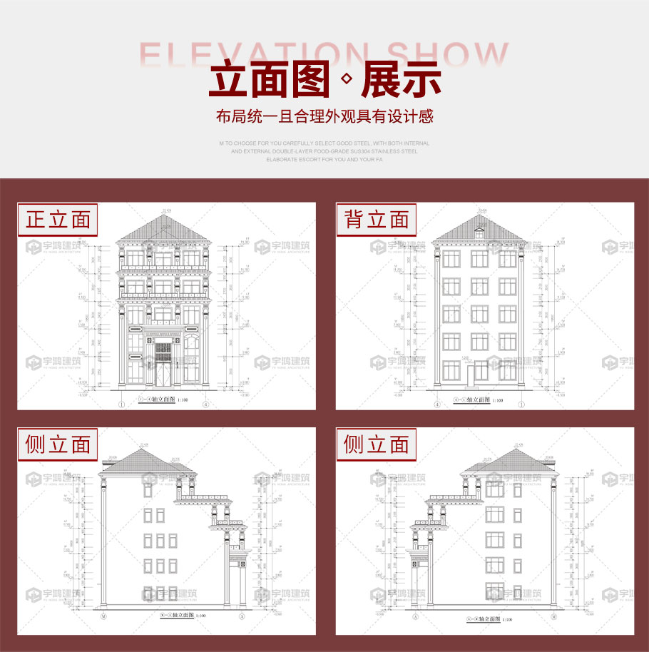 建筑平面圖:一層平面圖,二層平面圖,三層平面圖,四層平面圖,五層平面圖; 建筑立面圖:東立面圖,西立面圖,南立面圖,北立面圖,剖面圖; 大樣圖:樓梯詳圖,細部大樣,門窗大樣 |
