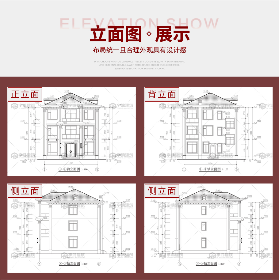 | 建筑圖: | 建筑圖: 建筑平面圖:一層平面圖,二層平面圖,三層平面圖; 建筑立面圖:東立面圖,西立面圖,南立面圖,北立面圖,剖面圖; 大樣圖:樓梯詳圖,細部大樣,門窗大樣 |