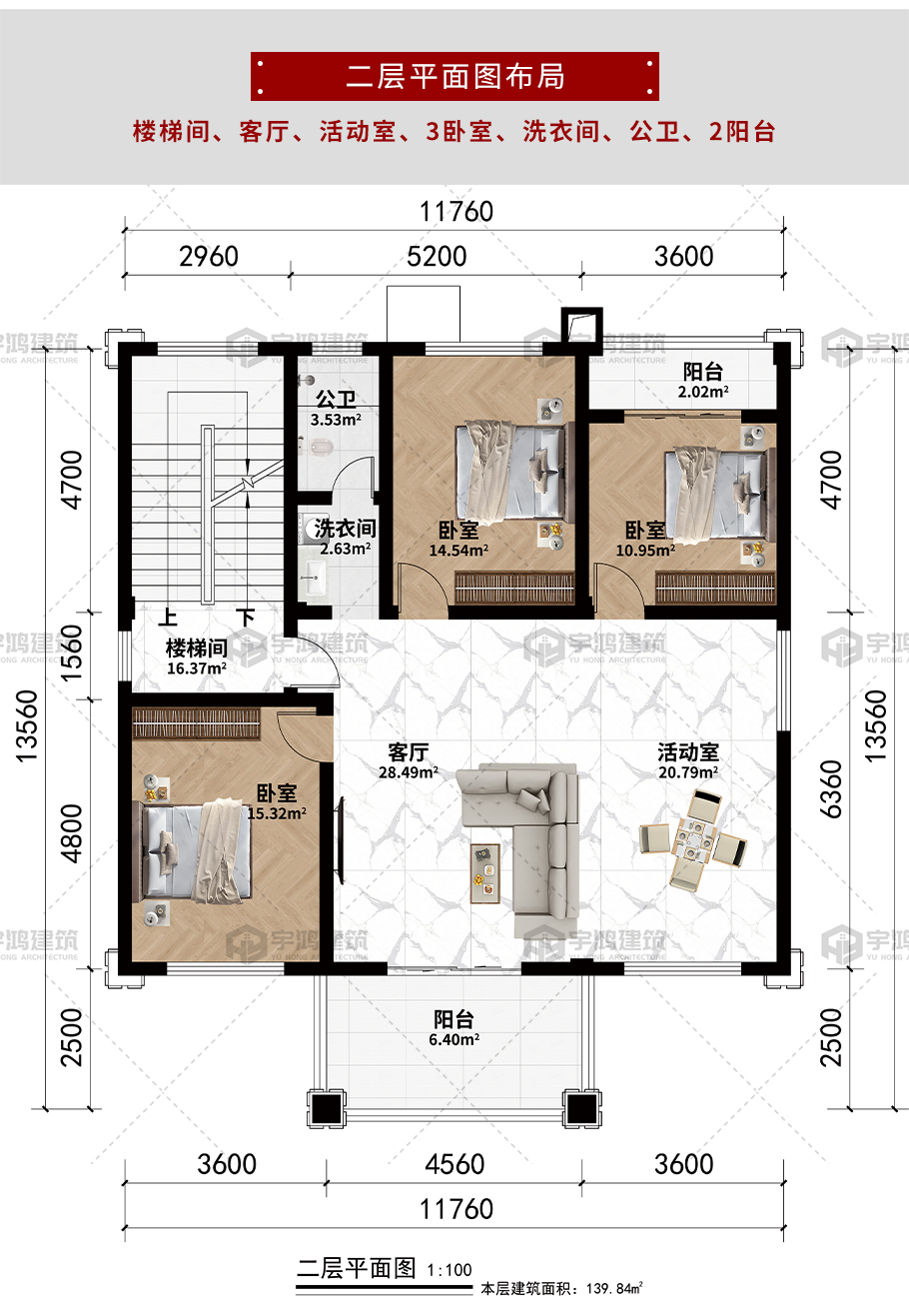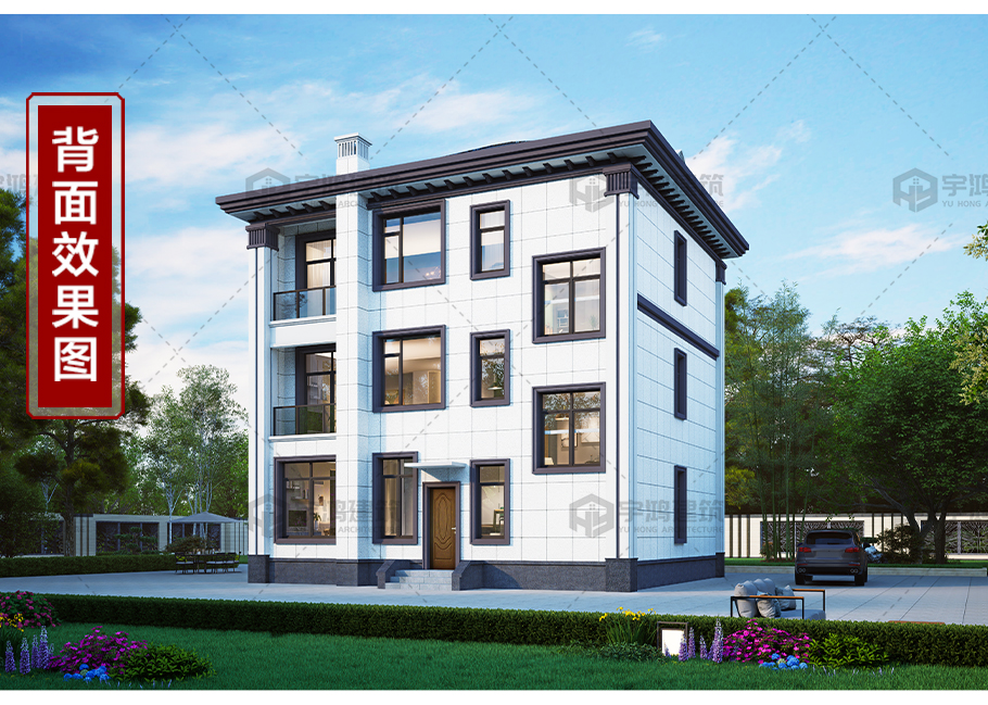 | 風格:新中式 | 層數:三層 | 結構形式:框架結構 | 圖紙編號:YH-3-6856 |