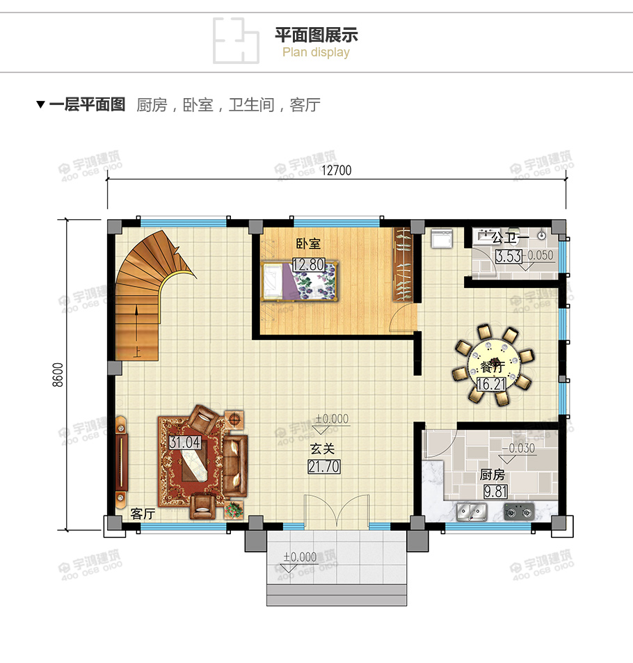 2019年新款110平米三層復式客廳農村別墅設計圖紙