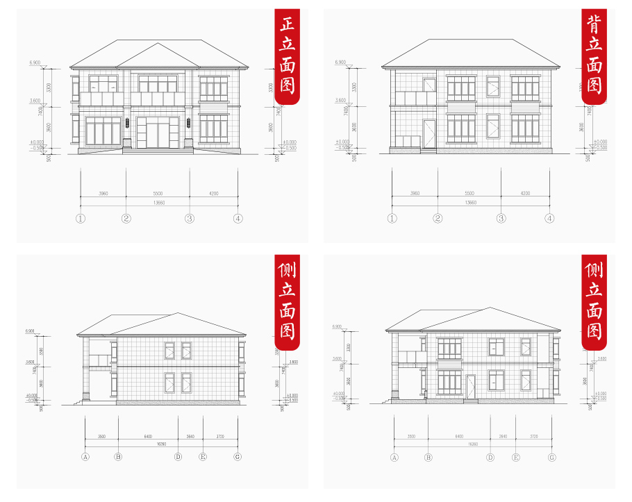| 建筑圖: | 建筑平面圖:一層平面圖,二層平面圖; 建筑立面圖:東立面圖,西立面圖,南立面圖,北立面圖,剖面圖; 大樣圖:樓梯詳圖,細部大樣,門窗大樣 |
